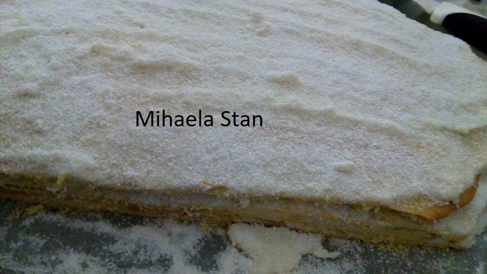 Imi amintesc ce suparata am fost cand am facut prima data prajitura: mi s-au rupt foile, m-am chinuit cu ele, le-am ars prea tare, apoi era prajitura beton. Eu am taiat-o imediat, n-am asteptat, asa ca a fost tare.