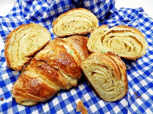Aluatul pentru croissant, este un aluat foietaj (sau foietat sau frantuzesc), diferenta fata de aluatul clasic este ca se folosesc drojdie si lapte in aluat – si dureaza minim 24 de ore pana este gata de bagat in cuptor. E un aluat de durata „turarea” aluatului nu este chiar o operatie usoara.