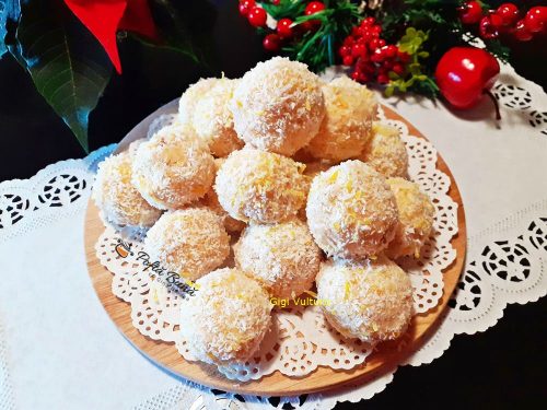 Se formeaza bilutele si se dau prin nuca de cocos amestecata cu coaja de lamaie rasa.