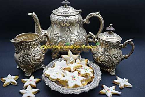 Biscuiti cu smantana si glazura e o reteta veche, tare draga mie, face parte dintre dulciurile copilariei mele. Sunt biscuiti usor crocanti, foarte parfumati, aromatizati cu vanilie si anason (sau scortisoara, cuisoare, coaja de lamaie sau portocala), cu o glazura care te duce cu gandul la o camera victoriana, cu dantele, argintarie…