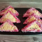 Dupa coacere, lasam blatul la racit la temperatura camerei, pentru 1-2 ore. Inainte de taiere este bine ca blatul sa fie complet rece, chiar il puteti pune la congelator timp de o ora, in felul acesta se va taia mult mai usor.