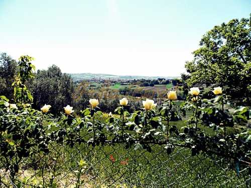 Va ofer cu mare drag cate un trandafir tuturor si o bucatica din peisajul pe care-l vad eu zilnic. Sunt de la mine din curte, din Italia. Ador trandafirii galbeni. 🙂