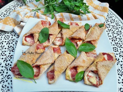 Cannoli de pizza: o reteta de pizza preparata putin altfel, in forma de cannoli. O reteta rapida, gustoasa si delicioasa. Un aperitiv sau o gustare perfecta. 🙂