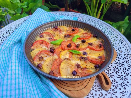 Caprese cu cartofi, rosii si mozzarella la cuptor – o reteta italiana, care imbina gustul cartofilor fierti, cu cel al rosiilor, maslinelor si al mozzarellei. O reteta pe cat de simpla, pe atat de delicioasa.