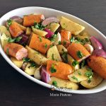 Carnati trandafiri cu cartofi, usturoi si ceapa rosie, la cuptor