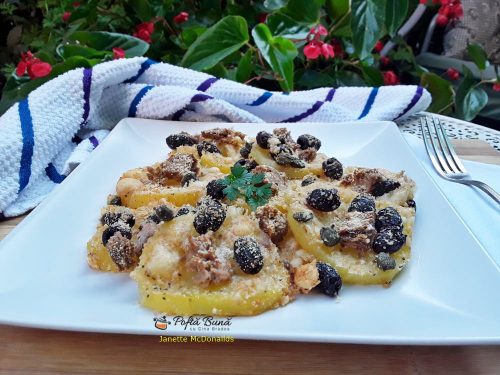 Cartofi cu ton si masline la cuptor