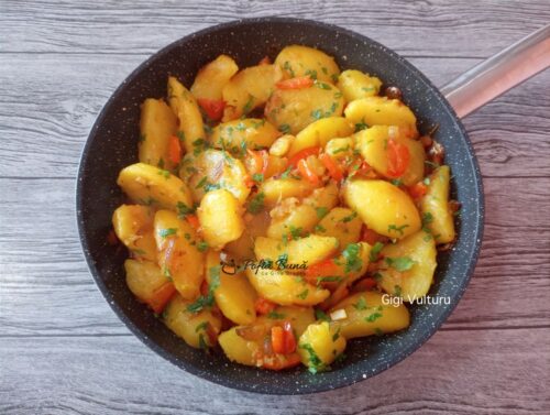 Cum se face reteta de cartofi la tigaie cu ardei si unt?
