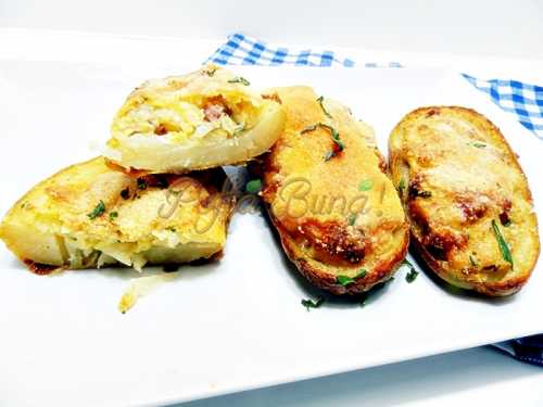 Cartofi umpluti cu bacon si parmezan, la cuptor