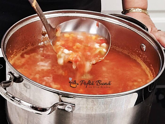 Puteti lasa asa ciorba, doar acrita cu aciditatea rosiilor sau se mai poate adauga acreala, dupa gust. Eu am adaugat sucul de la o lamaie.
