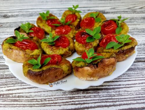 Ciuperci umplute cu mozzarella, cascaval si ceapa verde