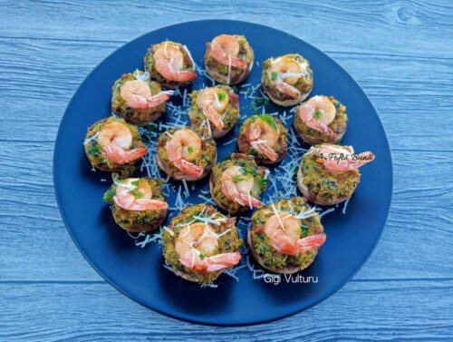 Ciuperci umplute cu spanac si creveti – este o reteta delicioasa cu un gust deosebit, se prepara usor si pot fi servite ca aperitiv sau ca fel principal, sunt satioase si foarte gustoase.
