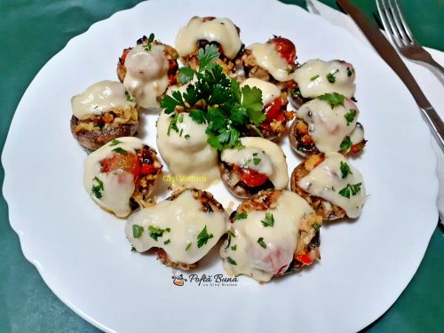 Puteti incerca si reteta clasica de ciuperci umplute doar cu cascaval, vedeti si voi cat de bine arata: