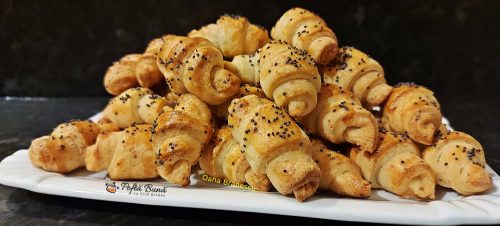 Cornulete cu branza si mac – aceste cornulete sunt perfecte pentru o gustare mai ales cand avem pofta de ceva sarat. Dupa coacere devin putin crocante, dar sunt si foarte fragede, se topesc in gura.