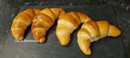 Din cantitatile de mai sus, eu am obtinut 48 de cornuri rumene si foarte pufoase.
