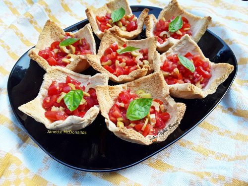 Cosulete bruschete: un aperitiv delicios si aratos, inspirat de reteta italiana de bruschette. Pot fi o gustare delicioasa atat pentru mesele festive, cat si pentru mesele lejere cu familia sau prietenii. Reteta de cosulete aperitiv.