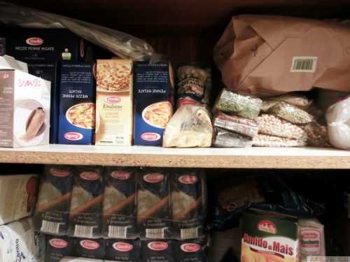 In fotografii o sa vedeti dulapul in care tin faina (alba si integrala), lapte, tarate, paste, orez, linte, zahar, soia, linte, naut si multe altele. Cand gasesc la oferta buna, iau mai mult. 🙂