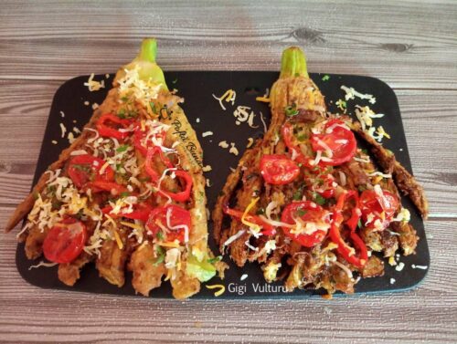 Daca suntem la capitolul preparatelor care sunt si aratoase, nu doar delicioase, va recomand sa incercati si reteta de flori din vinete: