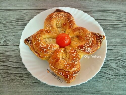 Flori din foietaj cu crema de branza – o reteta delicioasa si aspectuoasa. Se prepara foarte usor, trebuie doar putina indemanare pentru a face floarea. Aceste gustari din foietaj sunt perfecte ca aperitiv, gustare sau mic dejun.