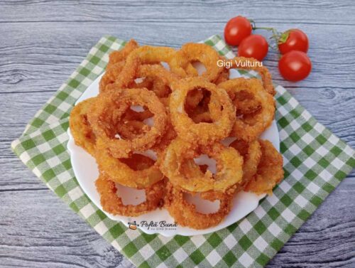 Inele de ceapa pane – o reteta delicioasa, usor de preparat si foarte gustoase, sunt crocante la exterior si fragede in interior. Se prepara rapid si sunt ideale ca gustare. Reteta de onion rings.