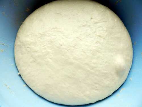 Se acopera aluatul cu un servet curat si se lasa la dospit. Se vede ca aluatul este neted si elastic, nu se lipeste de mana.