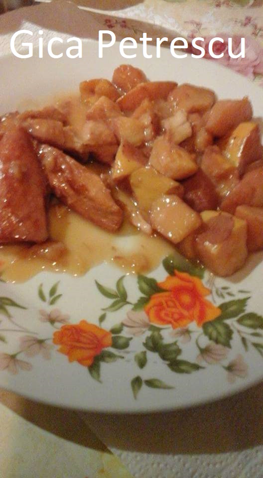 Am gatit astazi dupa reteta ,dar am pus cubulete de carne de curcan