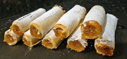 - Din cantitatile de mai sus eu am obtinut 32 de mini-strudele cu mere. Sunt absolut delicioase.