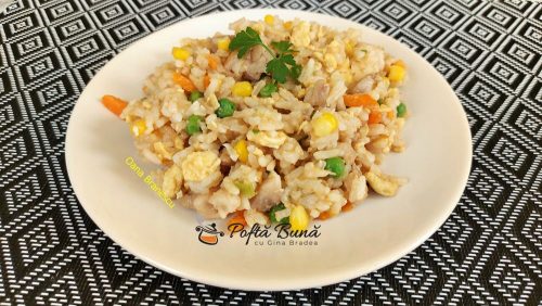 Este ideal ca acest orez prajit sa fie servit cald, este o bunatate. Eu il fac de doua ori pe saptamana si tot nu ma satur. Si fetitei mele ii place foarte mult, a devenit una din mancarurile noastre preferate.