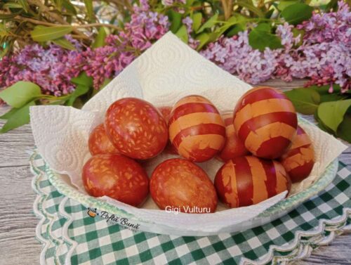 Pe blogul Pofta buna cu Gina Bradea puteti gasi si alte moduri in care pot fi vopsite ouale pentru Pasti. Traditionale sau usor modernizate, cu siguranta veti gasi cel putin o reteta care sa fie potrivita gustului vostru. 🙂