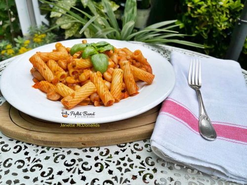 Paste cu fasole si suc de rosii
