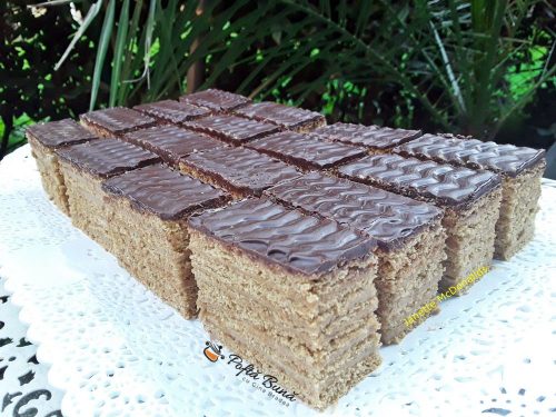 Asezam si ultima foaie fara crema deasupra, acoperim cu o pelicula transparenta si tinem prajitura in frigider pana a doua zi.
