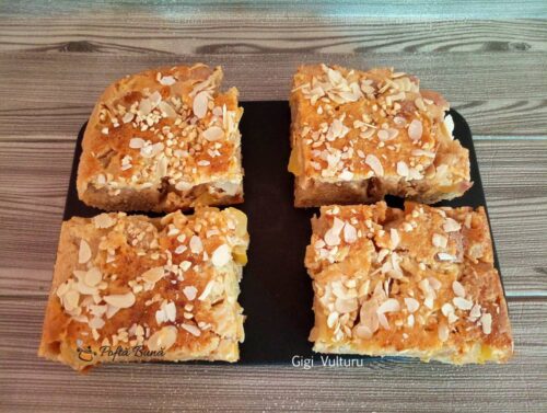 Reteta se face simplu, cu ingrediente care sunt la indemana, iar rezultatul este o prajitura delicioasa, numai buna pentru a fi servita alaturi de o cafea, ca mic dejun sau ca desert la o masa in familie.