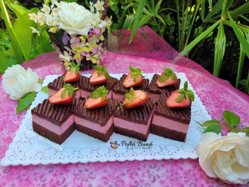 Prajitura se tine la rece circa 2-3 ore apoi se poate portiona si servi.