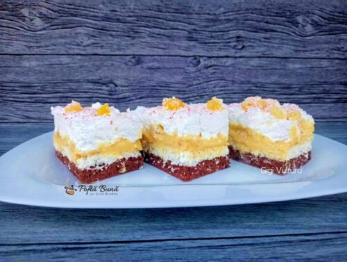 Mai puteti arunca o privire si pe reteta de prajitura cu blat de nuca si crema de vanilie, o prajitura delicioasa, cu texturi si arome echilibrate: