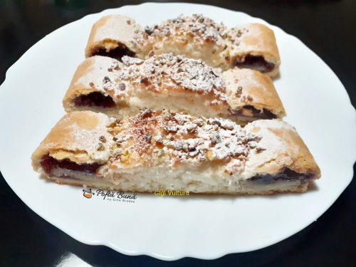 Dupa ce se raceste se presara deasupra zahar pudra si se taie felii.