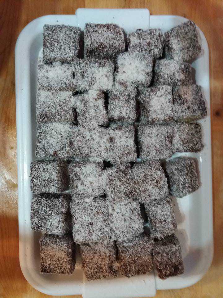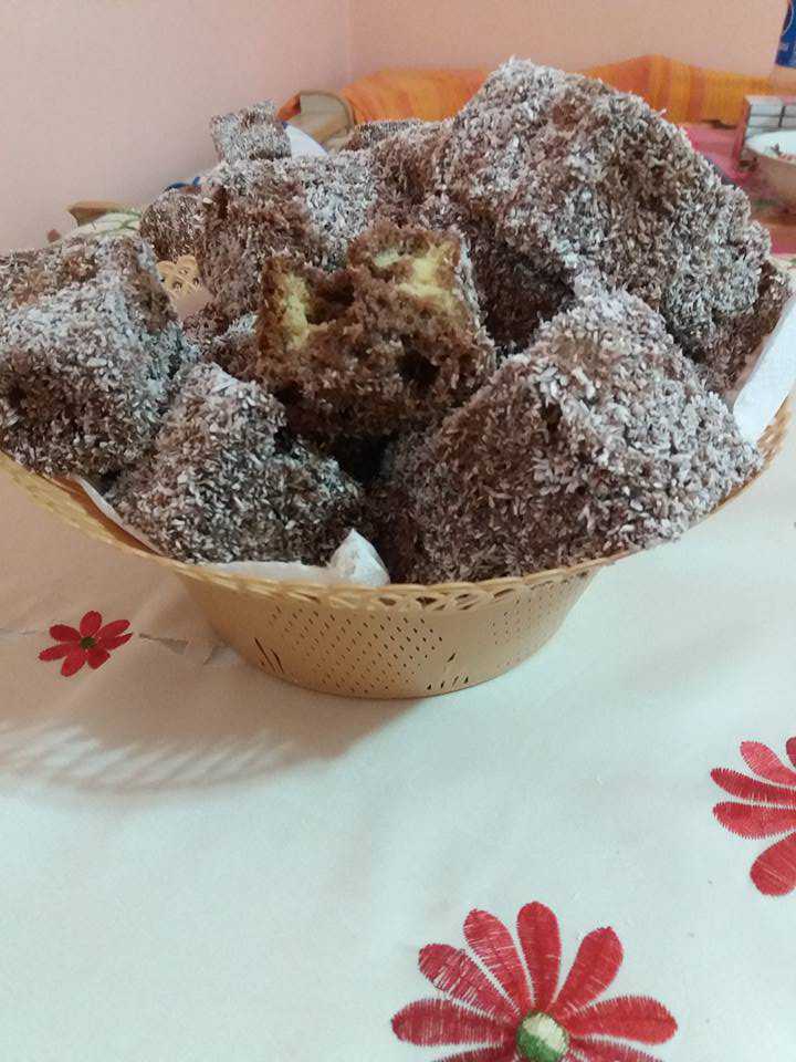Prajitura tavalita cu nuca si cocos – o reteta simpla si gustoasa a copilariei, numita si Lamington. Se face cu blat pufos de pandispan, sirop de cacao si rom, totul tavalit bine prin nuca prajita si macinata sau nuca de cocos razuita. Un deliciu!
