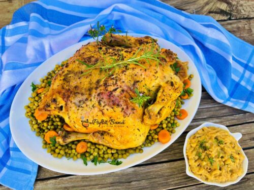 Puteti incerca reteta de pui la cuptor marinat cu iaurt si lamaie, o friptura delicioasa de pui intreg: