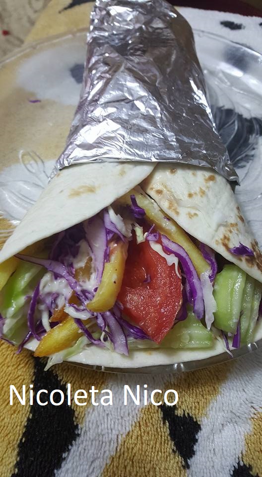Si mie-mi place shaorma mult,am facut si cu pui si de post cu ciuperci si struguri;mi-a iesit o nebunie!!
