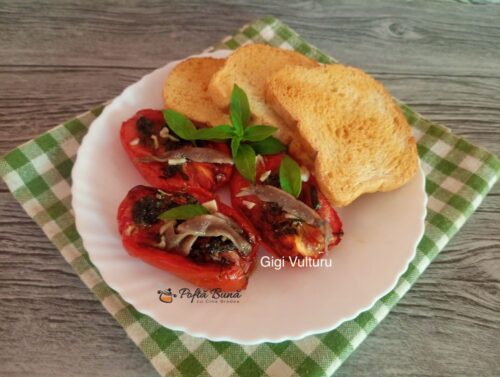 Rosii la cuptor cu ansoa si busuioc – o reteta aromata, care se face rapid. Combinatia dintre busuioc si ansoa e completata de cea a rosiilor coapte. Poate fi un aperitiv perfect pe o masa festiva, dar merge perfect si in cadrul unei mese cu familia.