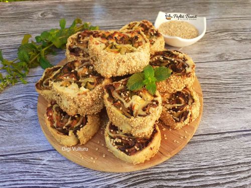 Rulouri aperitiv din aluat foietaj cu vinete si dovlecei