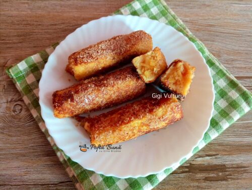 Rulouri din paine prajita cu gutui – o reteta rapida, usor de preparat, facuta din ingrediente care sunt la indemana oricui. Aceste rulouri sunt perfecte atat la micul dejun, cat si ca gustare.