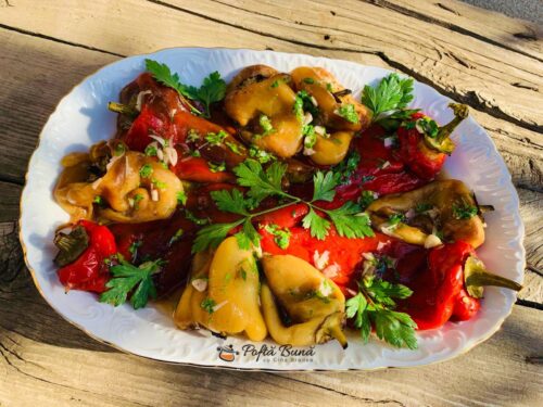 Salata de ardei copti cu putin usturoi, verdeata, ulei si otet – o mancare de vara, una dintre preferatele mele. O reteta extrem de simpla, care pastreaza savoarea si dulceata naturala a ardeilor. Cum se face salata de ardei copti? Reteta pas cu pas.