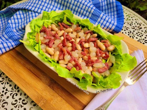Salata cu fasole, bacon si cipolline in otet