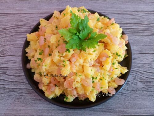 Salata de cartofi cu creveti si maioneza – o reteta simpla, rapida si satioasa, perfecta atat pentru pranz, cat si pentru cina. Gustul este unul deosebit, iar reteta se face tare simplu.