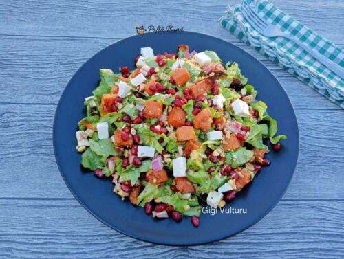 Amestecam totul si putem servi salata. Reteta noastra este gata, va invit cu drag si pe voi sa o incercati si de abia astept sa reveniti pe blog, sa ne spuneti si noua cum a iesit.
