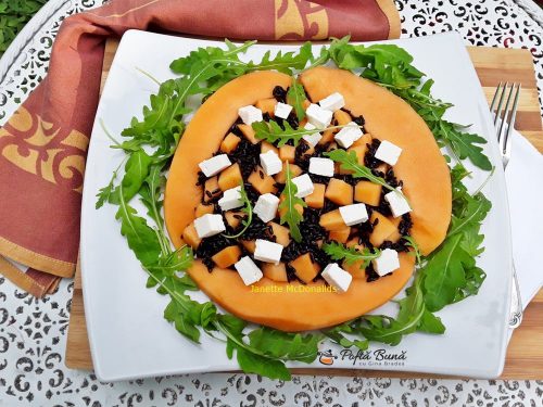 Salata de orez negru cu pepene galben si branza feta