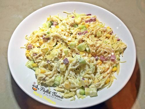 Salata de paste cu legume: o salata rece, se poate servi imediat datorita faptului ca am „spalat” pastele imediat dupa ce le-am fiert si se racesc foarte repede. Va recomand sa incercati si reteta de salata orientala, dar si reteta de salata de vinete, ambele retete se fac foarte simplu, iar rezultatele sunt extrem de gustoase.
