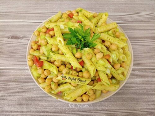 Salata de paste cu naut – o reteta usoara, satioasa si ideala pentru zilele calde de vara. Se prepara rapid, din ingrediente simple si este perfecta atat pentru perioadele de post, cat si ca garnitura sau masa principala.