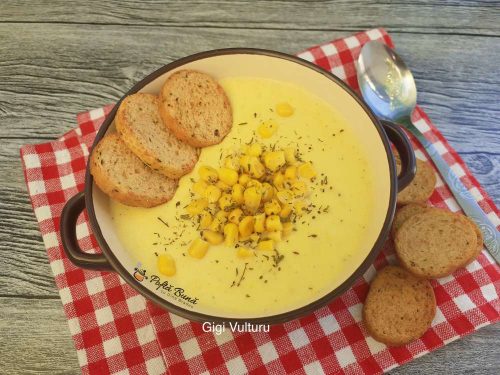 Supa crema de cartofi cu porumb – o supa cremoasa usor de preparat, consistenta si foarte gustoasa apreciata de adulti si copii. Poate fi un pranz sau o cina delicioasa.