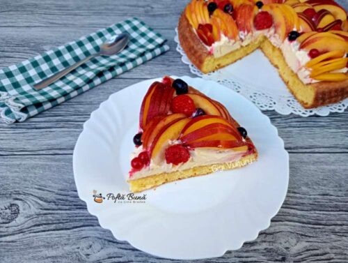 Tarta cu crema caramel si nectarine – este o tarta rapida, aromata si foarte gustoasa. Este ideala pentru mese festive sau de sarbatori, dar si ca gustare alaturi de o ceasca de cafea.