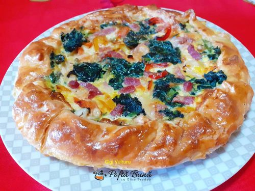 Tarta sarata din aluat foietaj cu legume si costita afumata